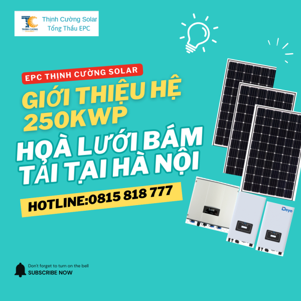 Hệ Thống Điện Mặt Trời 250 Kw Hoà Lưới Bám Tải Tại Hà Nội